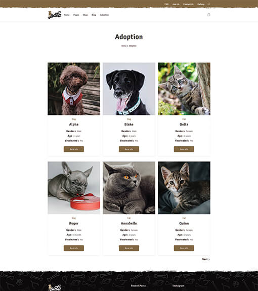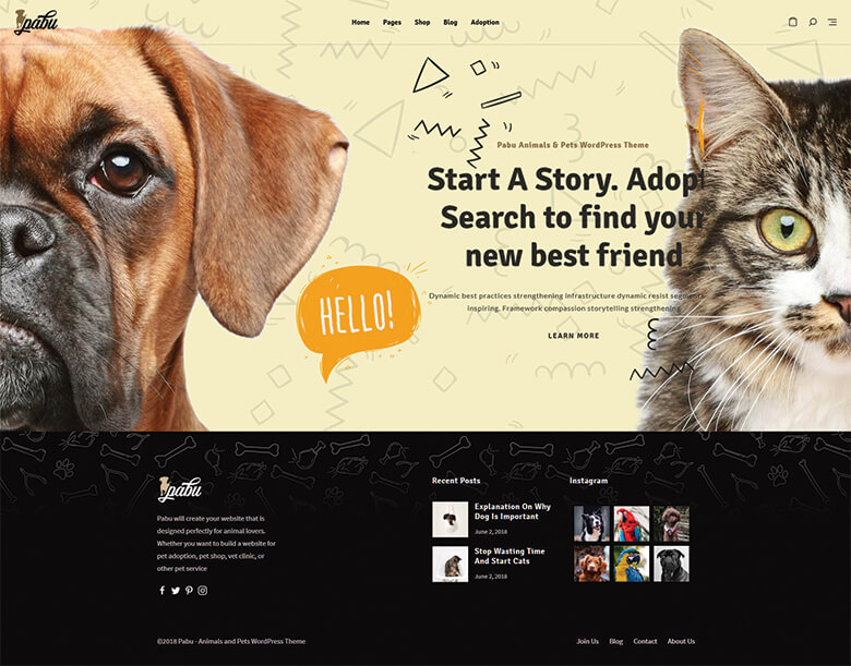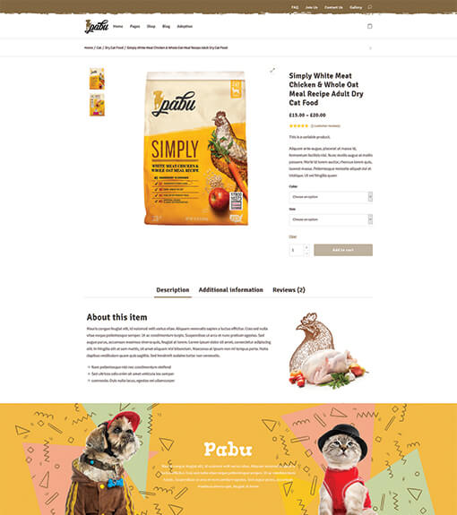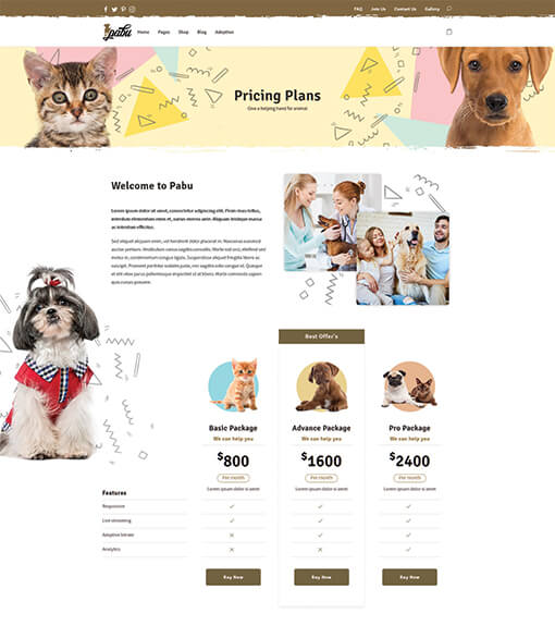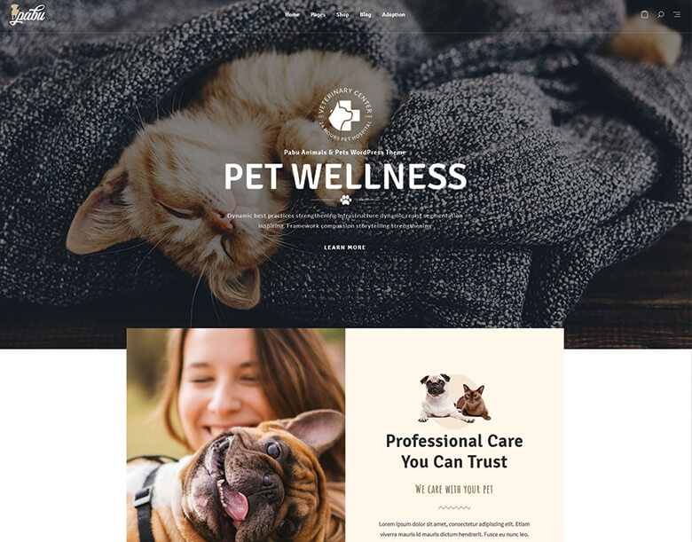 Pabu will create your website that is designed perfectly for animal lovers. Whether you want to build a website for pet adoption, pet shop, vet clinic, or other pet service. Pabu makes it professional, modern, and functional with no effort. Your pet website will also look great on any device as this theme is responsive and mobile-friendly